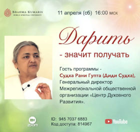 достижениях Раджа йоги, дарили открытки с изначальными качествами души и буклеты.